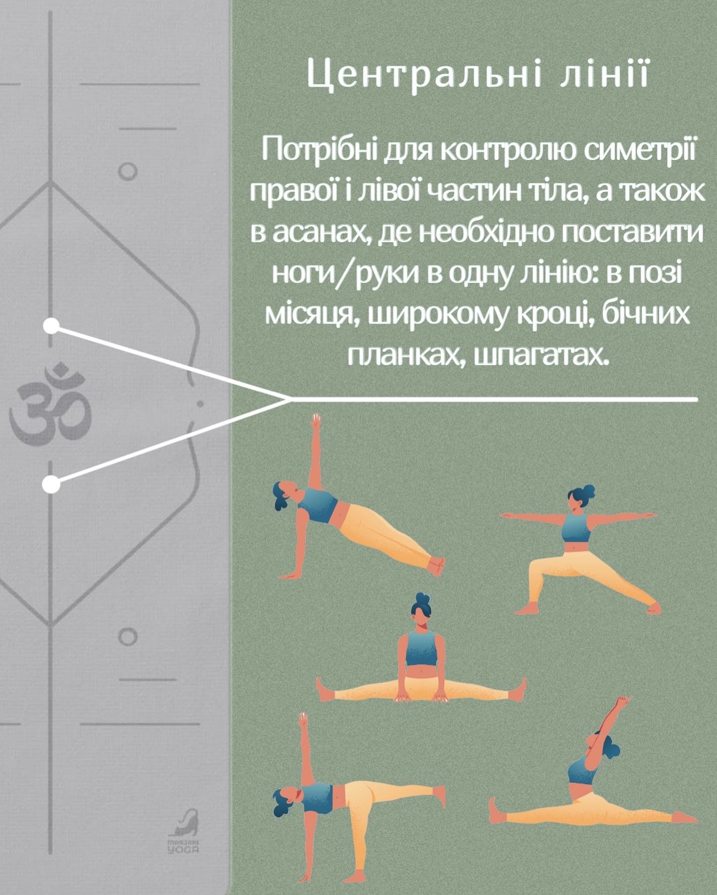 Килимок для йоги з розміткою. Користування лініями.